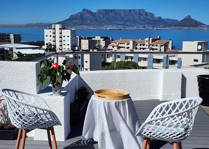 O apartamento The Penthouse, Pub Lounge And Porch On The Palace, Bloubergstrand Cidade Do Cabo à beira-mar de 65 m² está situado 3 km de Sanccob Western Cape e dispõe de terraço com piscina. A uma distância de aproximadamente 10 minutos a pé do quarto em acomodações particulares de 1 quartos encontrará Big Bay Cape Town.